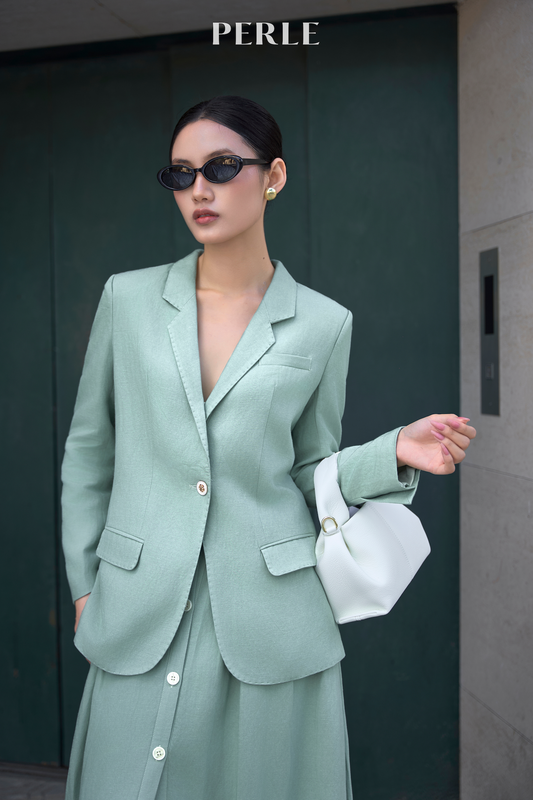 Vest 65% Linen 2 Lớp Đột Viền - Xanh