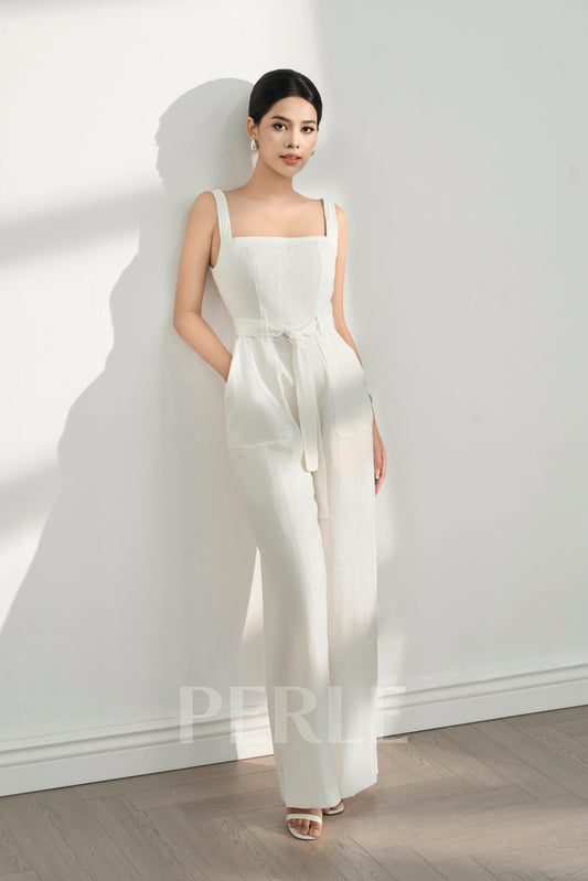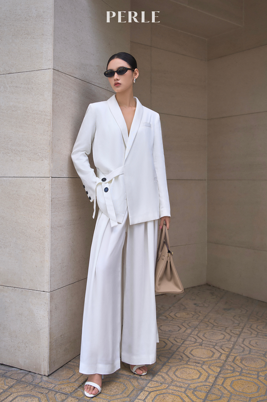 Quần 100% Linen Ống Rộng Có Ly - Trắng Tinh