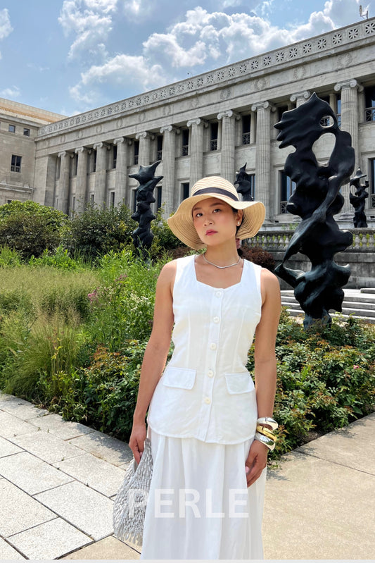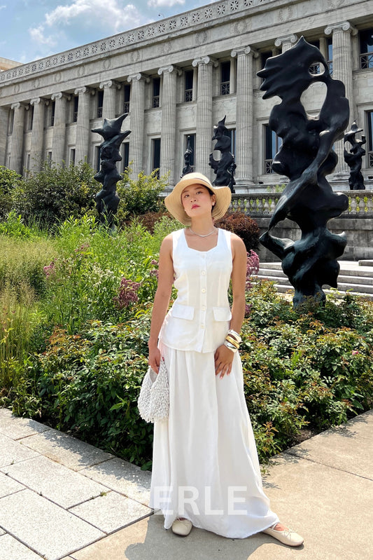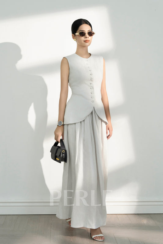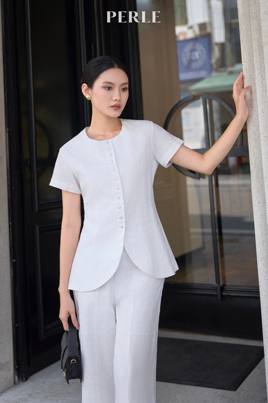 Áo Vest 100% Linen 2 Lớp Cúc Bọc Tay Cộc - Trắng Tinh